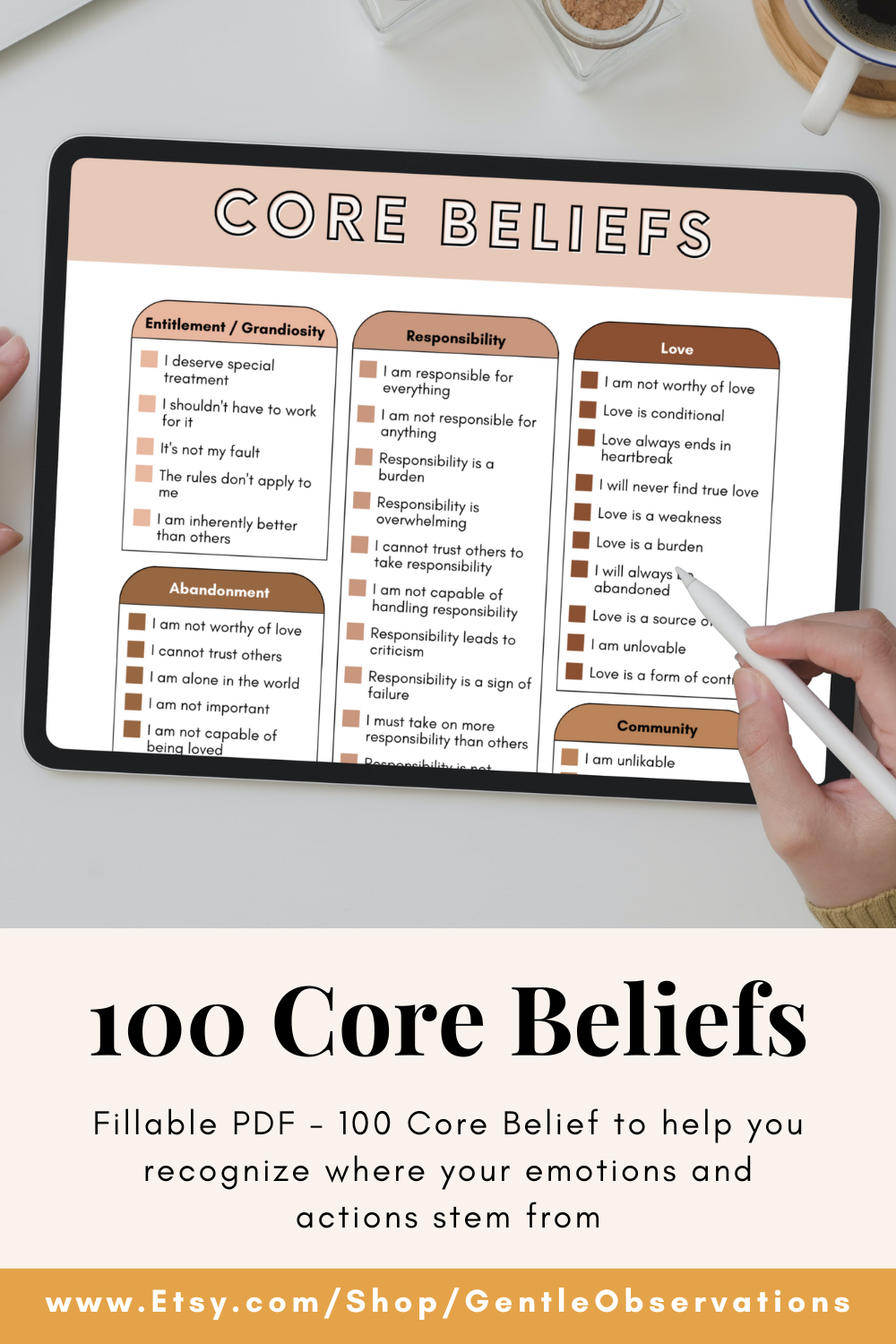 Core beliefs are deeply ingrained beliefs that we hold about ourselves, others, and the world around us. These beliefs often shape our thoughts, emotions, and behaviors. Identifying and challenging these core beliefs can be a powerful tool for personal growth and self-improvement.