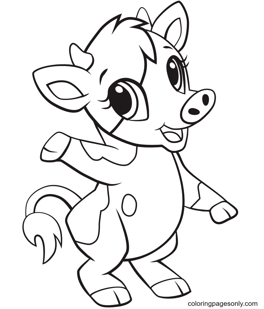 3. Cow and Calf: This adorable coloring page shows a mother cow and her calf standing together. Kids can choose different colors to make the cow and calf look unique and vibrant.