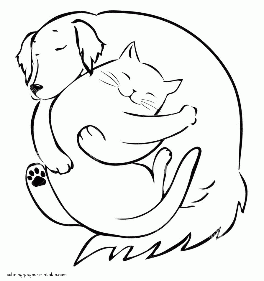 Dog And Cat Sleeping Together Coloring Page COLORING PAGES PRINTABLE COM