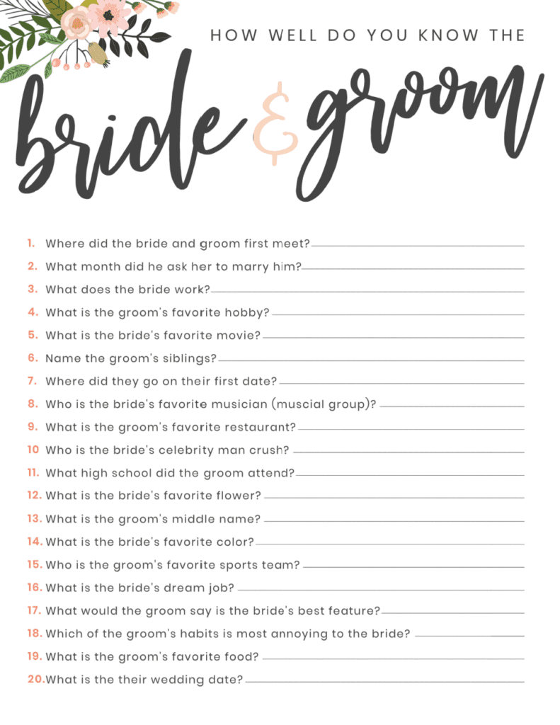 7 Incredibly Fun Couples Wedding Shower Games FREE PRINTABLE