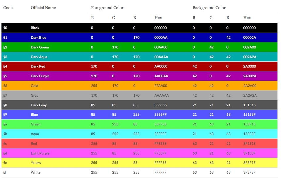 Minecraft Dye Color Codes