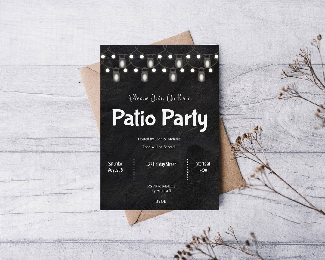 So, what are you waiting for? Pick your favorite patio party invitation template and start planning the ultimate outdoor soiree that your friends and family will remember for years to come.