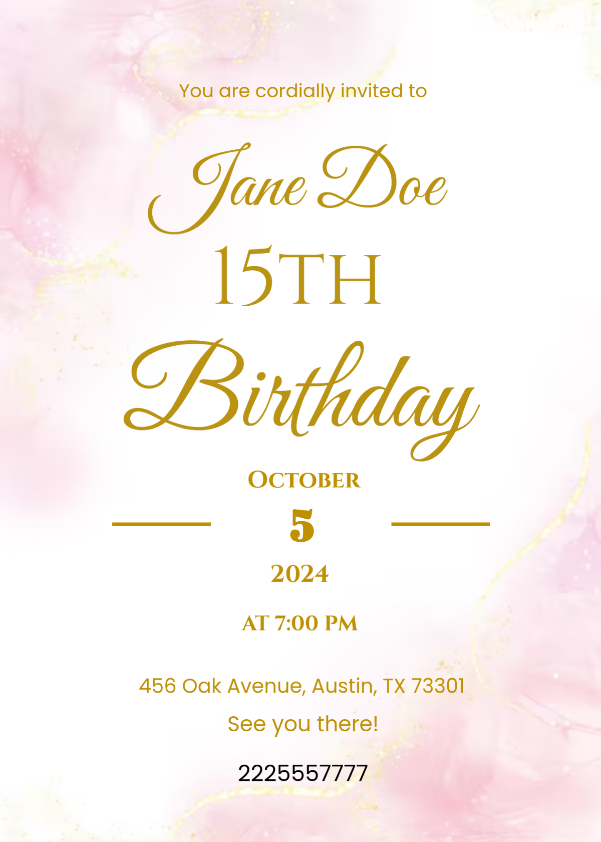 So why wait? Download our pink and gold birthday invitation template today and start planning the perfect party. With its stunning design, easy customization, and cost-free price tag, this template is sure to be a hit with your guests. Make your event one to remember with our beautiful pink and gold invitations!
