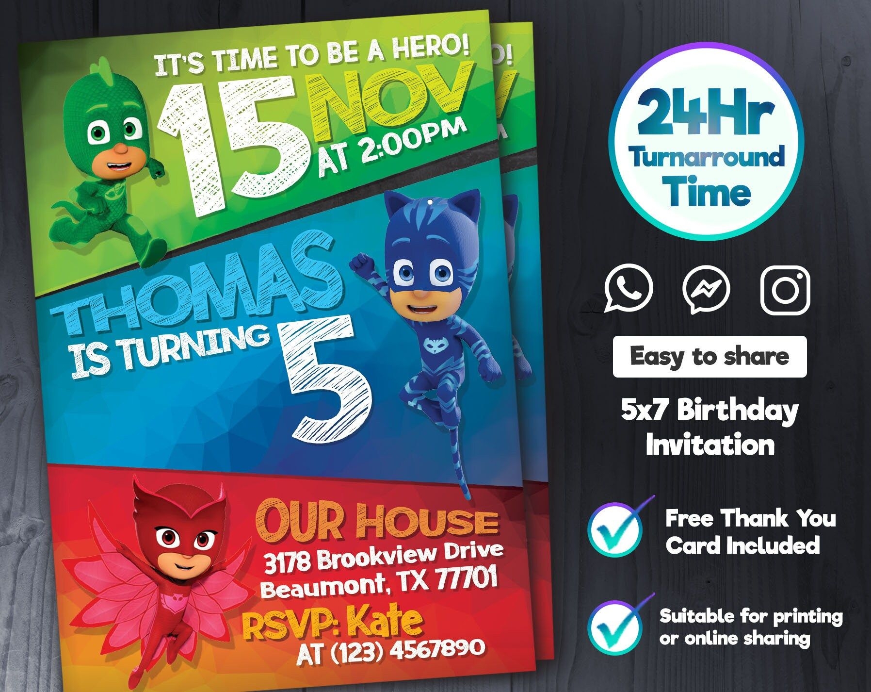 Get ready to bring the excitement of PJ Masks to life with these amazing birthday invite templates!