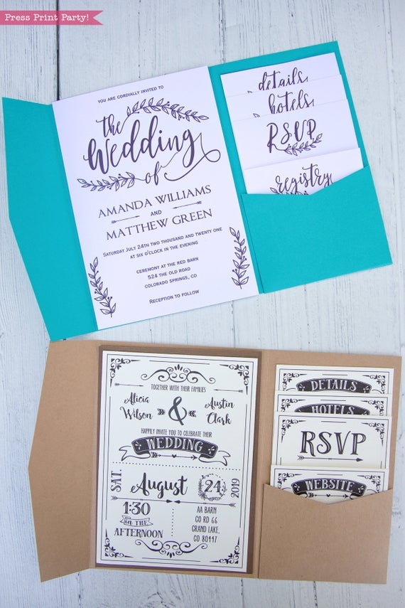 Pocket Wedding Invitation Template DIY SVG Or Print Press Print Party