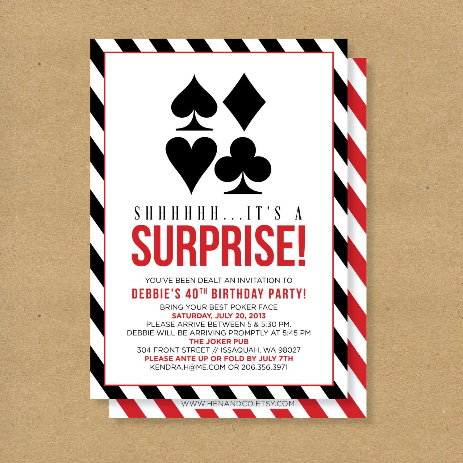 From classic card suits and poker chips to bold and modern designs, our templates are sure to impress your guests and get them excited for the big event. You can even add your own personal touch by including a special message or funny quote to set the mood for a night of fun and games.