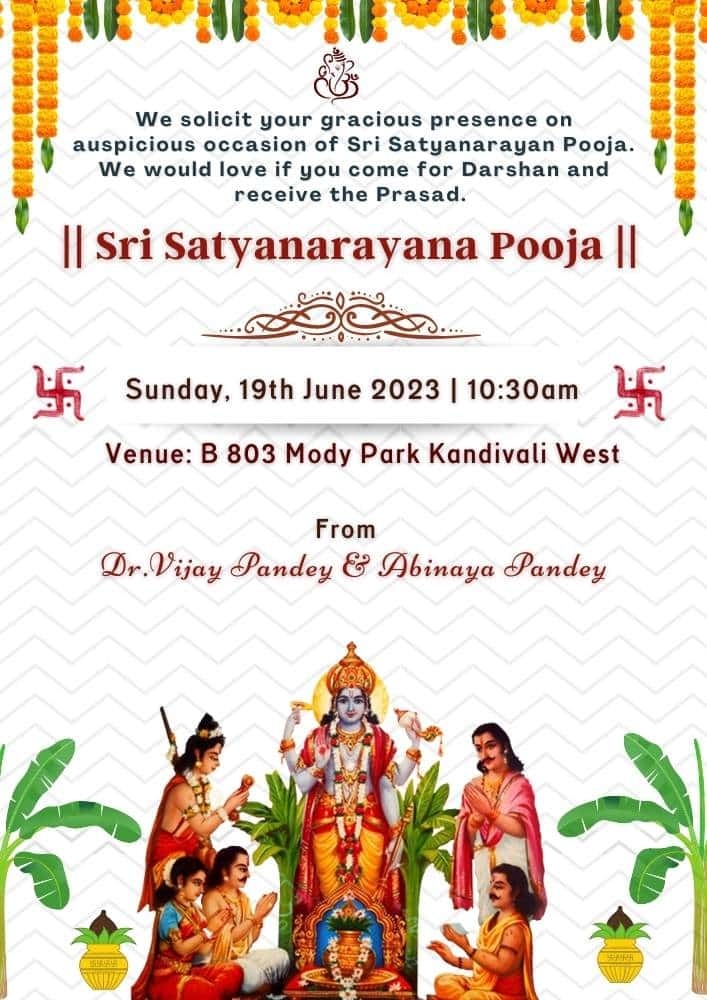 Custom Satyanarayan Pooja Invitation Template Free Invitation Card