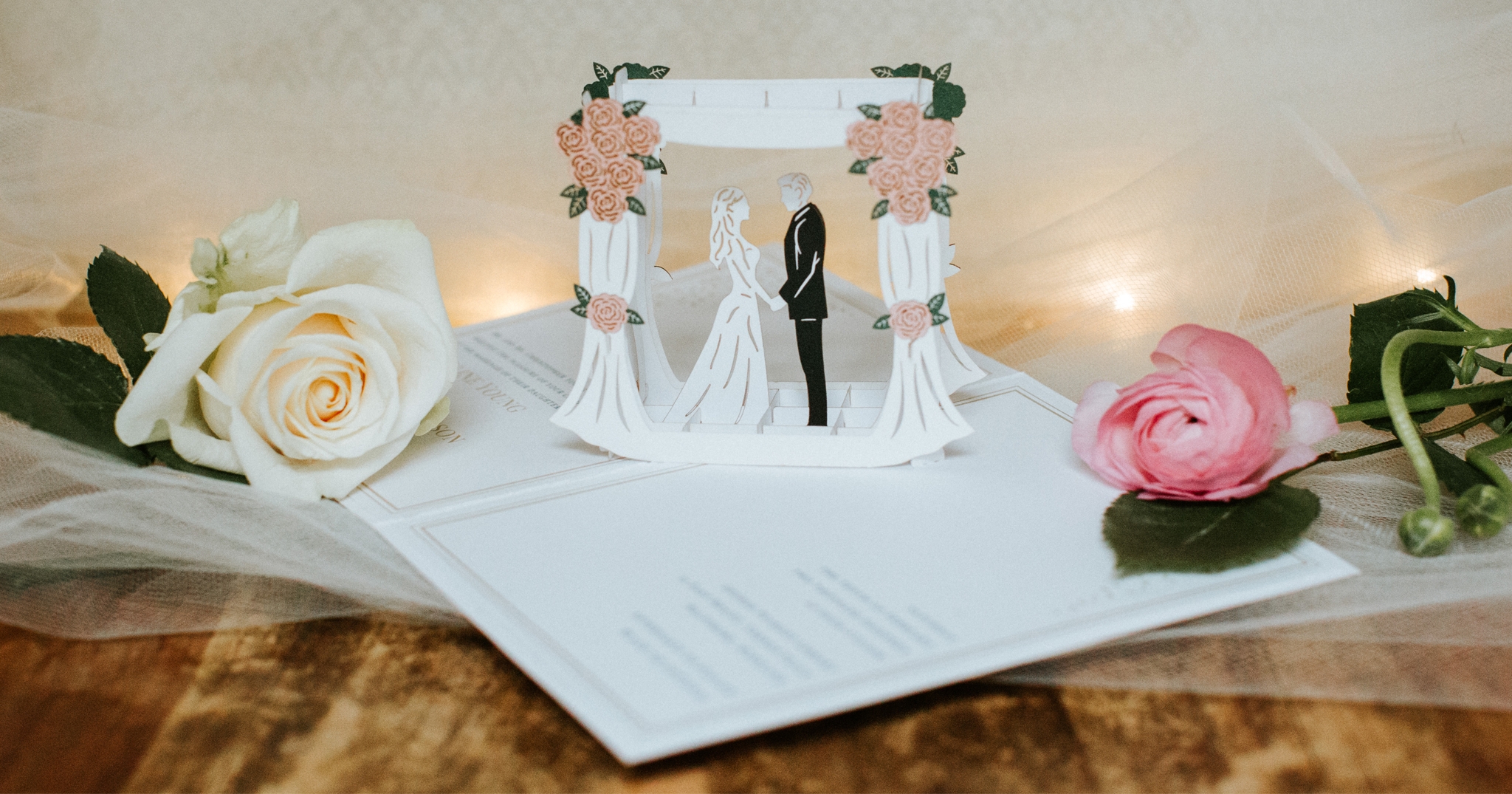 One popular design for pop up wedding invitations is a 3D floral motif that pops up when the invitation is opened. This elegant design adds a touch of sophistication to your wedding stationery and will surely impress your guests. Another popular design is a pop up cake or champagne glass, perfect for a whimsical or romantic wedding theme.