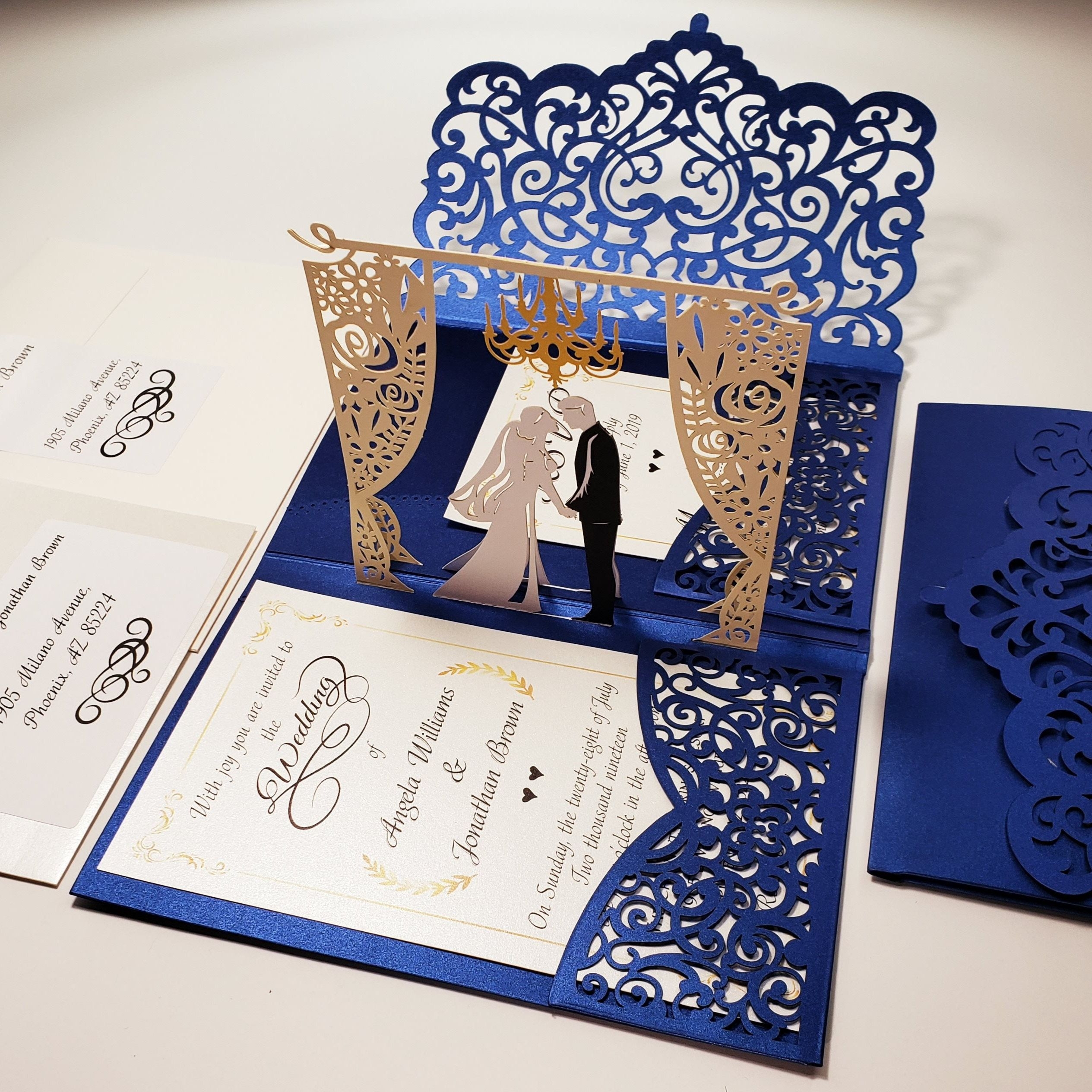 Pop up wedding invitations templates are easy to customize with your own details, such as your names, wedding date, and venue. You can also choose the colors and fonts that match your wedding theme to create a cohesive look. Many templates also allow you to add photos of you and your partner, making the invitations even more personal and memorable.