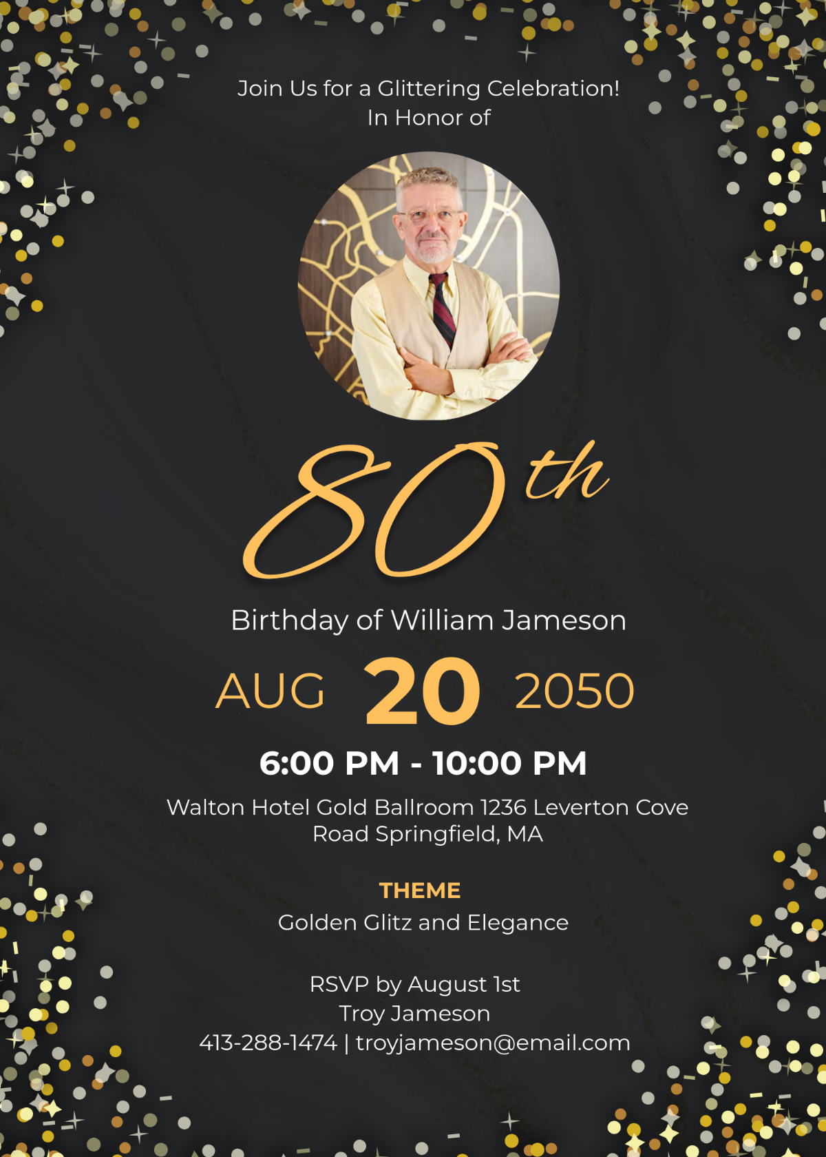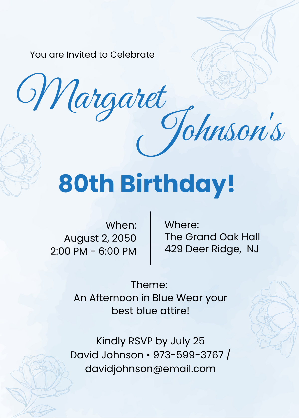 In conclusion, printable 80th birthday invitation templates are a convenient, customizable, and cost-effective option for creating memorable invitations for a special milestone celebration. With a wide range of designs to choose from and the ability to personalize the template to suit the birthday celebrant’s preferences, these templates make it easy to set the tone for a joyous and unforgettable birthday party.