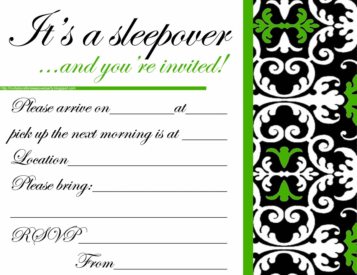 Printable Blank Sleepover Invitation Template Free Templates Printable