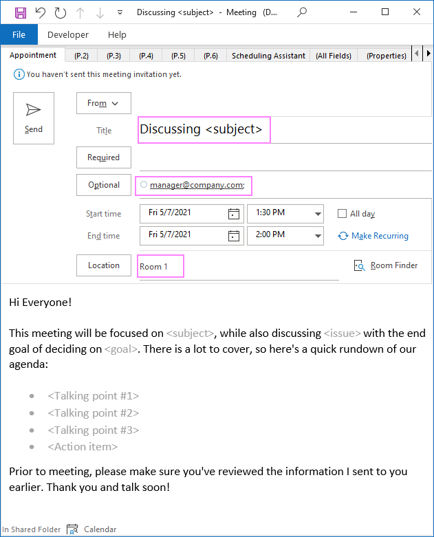 Outlook Meeting Invite Template Collection