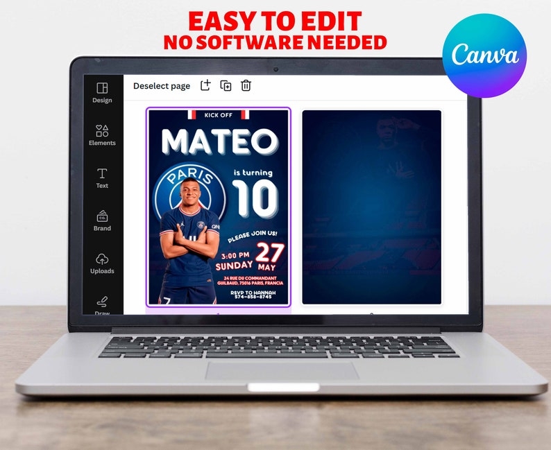 PSG Mbappe Birthday Invitation Canva Template Mobile Size Etsy