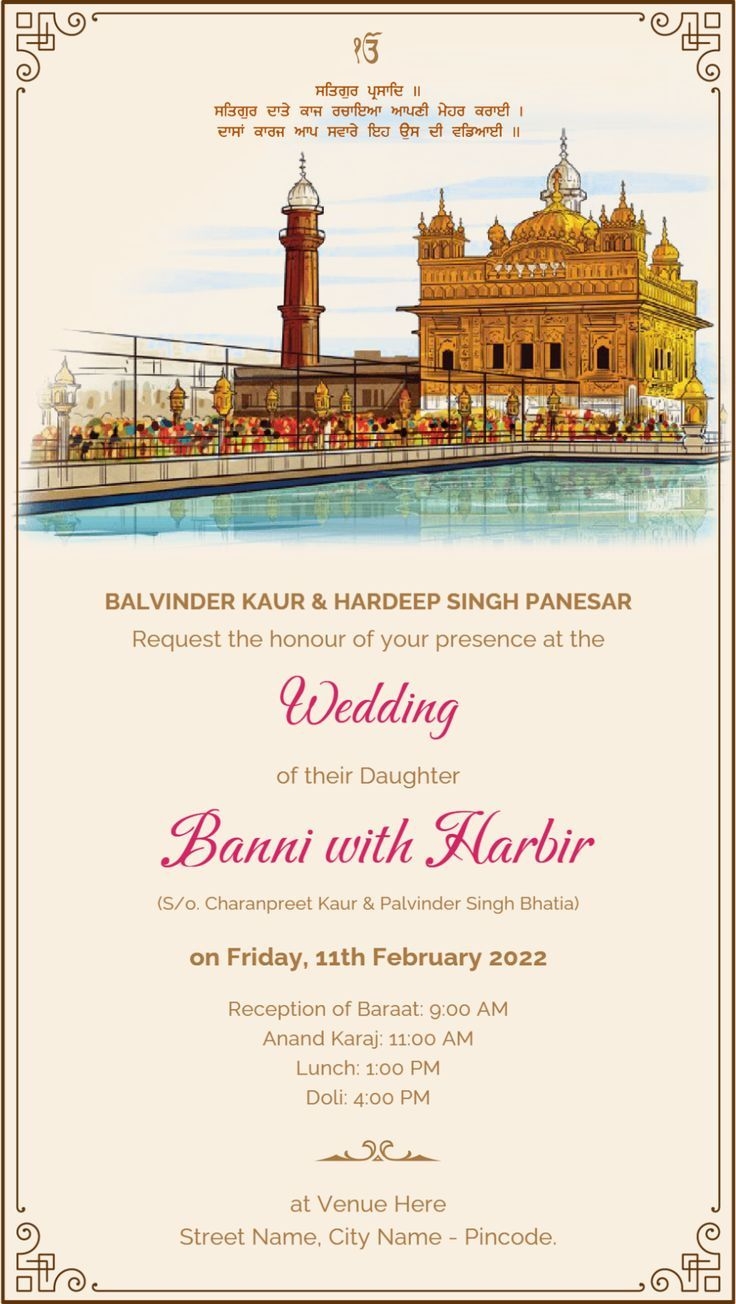 Sikh Wedding Invitation Card With Gurudwara Happy Invites Ecard Maker