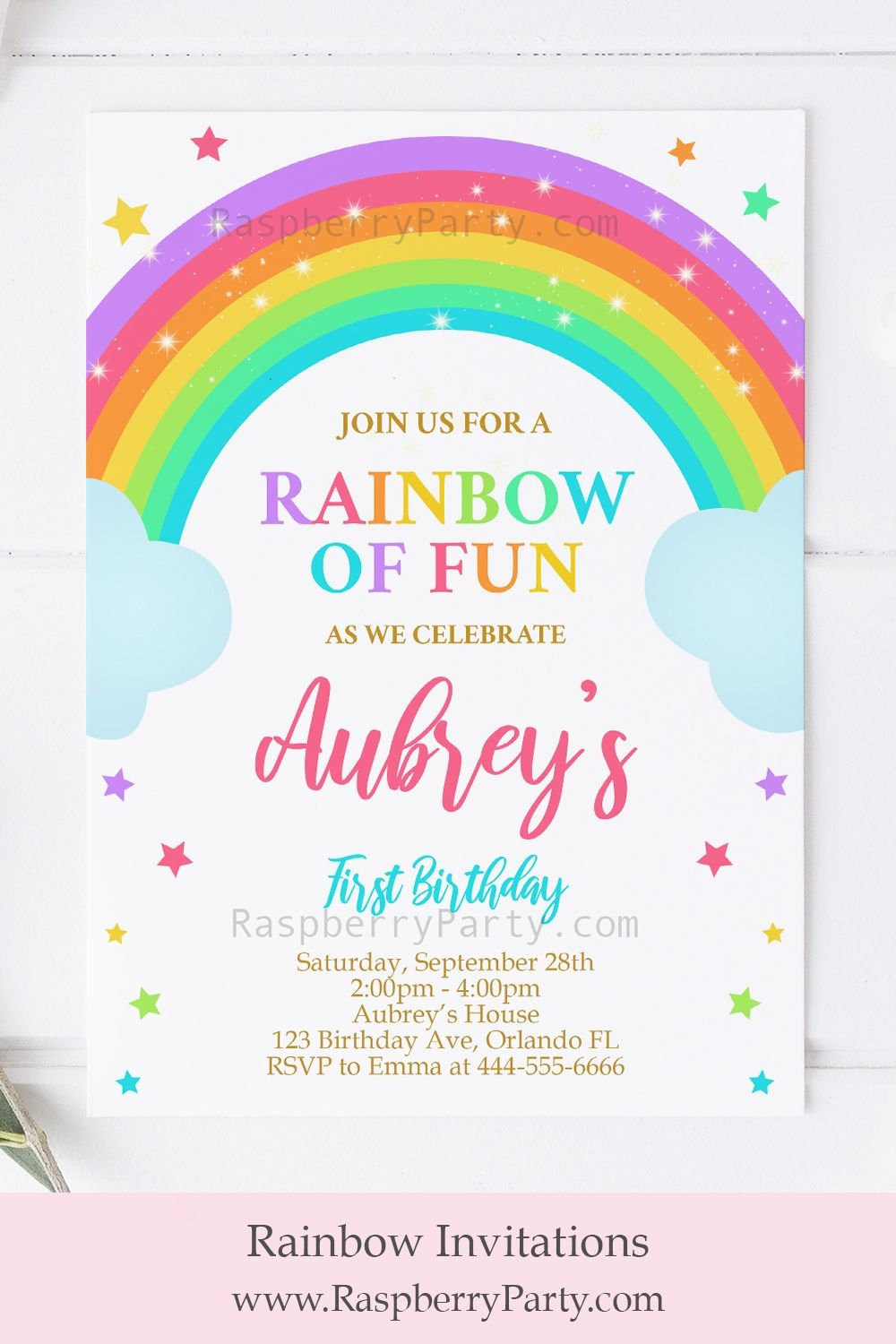 Download and Print rainbow birthday party invitation template free Listed below