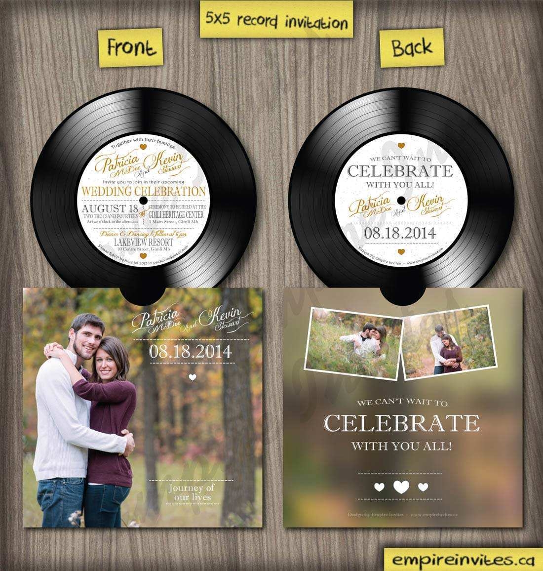 Record invitation templates are designed to resemble vinyl records, with a circular shape and grooves that mimic the texture of a real record. These templates often feature bold colors and retro fonts to give them a vintage feel. They can be customized with details of the event, such as the date, time, and location, as well as any special instructions or RSVP information.
