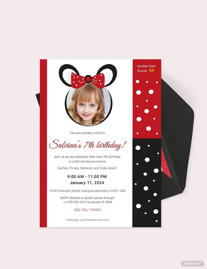 Whether you are hosting a birthday party, baby shower, or any other special occasion, our red Minnie Mouse invitation template is versatile and can be customized to suit your specific needs. Simply add your event details, such as the date, time, and location, and you’re ready to send out your invitations.