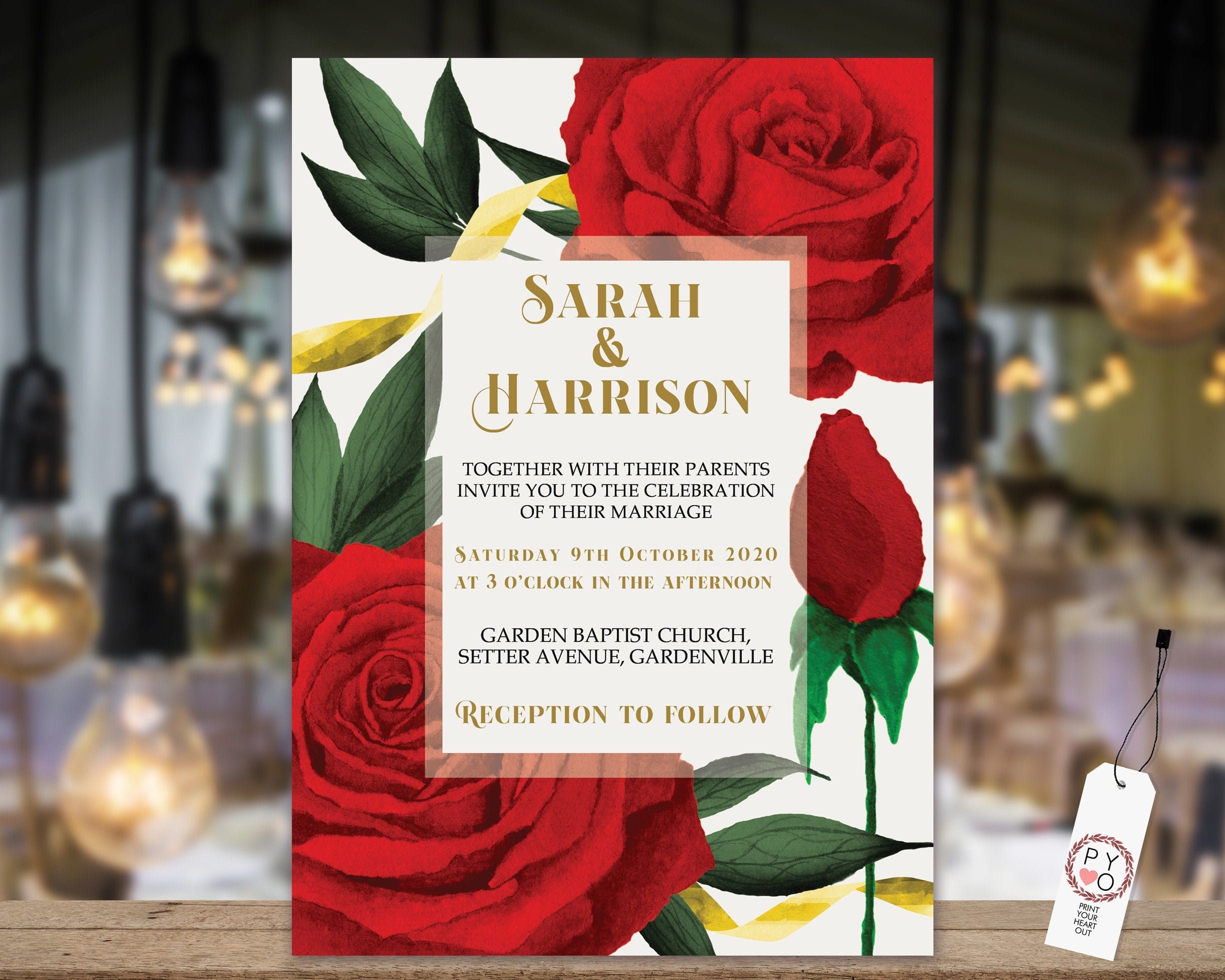 Red roses have long been a symbol of love and romance, making them the perfect choice for wedding invitations. Their vibrant color and delicate petals add a touch of elegance to any invitation design, making them a popular choice for couples looking to set the tone for their special day.