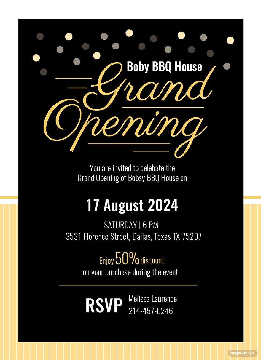 The template includes space to add the date, time, and location of the grand opening event, as well as a brief message welcoming guests to the restaurant. You can easily personalize the template with your restaurant’s logo and branding to create a professional and cohesive look for your invitations.