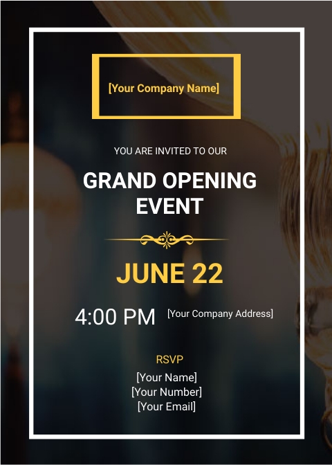 Looking for the perfect invitation card to send out for our restaurant opening? Look no further! Our template features elegant design elements and customizable details to make your guests feel special and excited to join us for this momentous occasion.