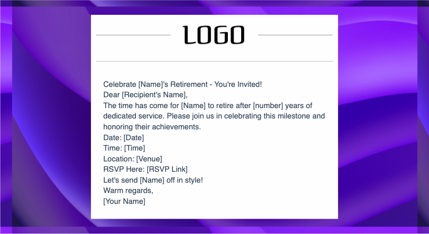 Here is a sample retirement party invitation email template that you can customize for your own event: