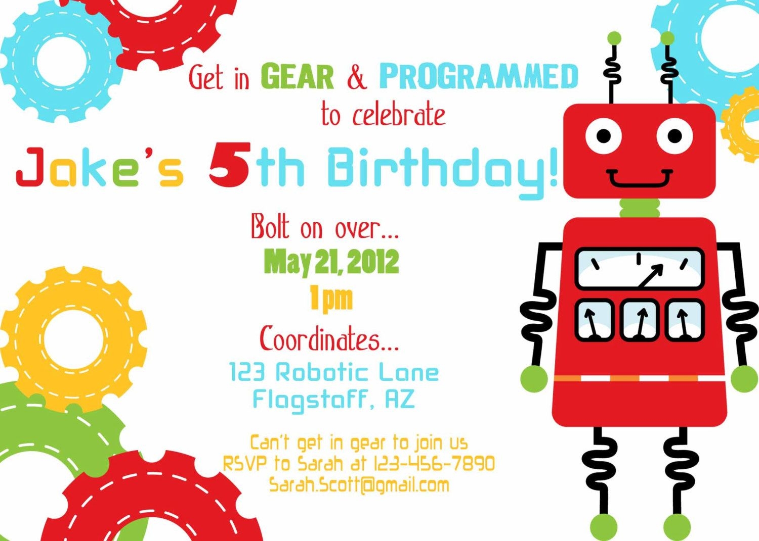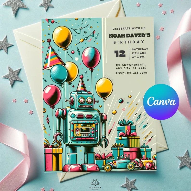 Get started on planning the perfect robot birthday party today with our customizable invitation template. Your child will thank you for throwing the coolest party in town!