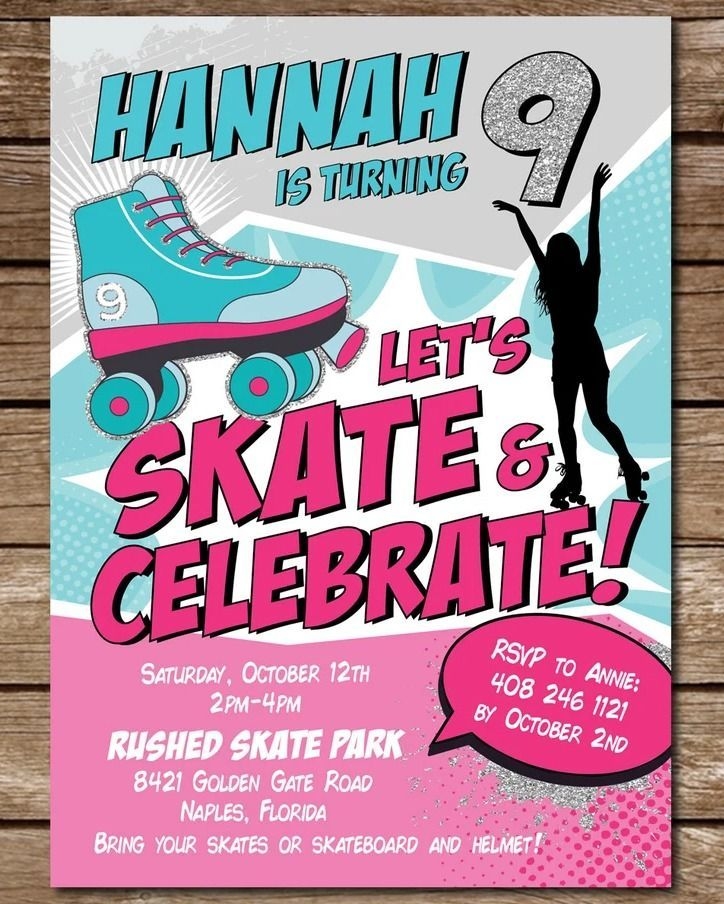 4. DIY Customization: If you’re feeling creative, why not design your own roller skate birthday invitation template? You can use online design tools or software to create a personalized invitation that perfectly captures the spirit of your party. Add photos, graphics, and text to make it truly one-of-a-kind. Your guests will appreciate the extra effort and personal touch you put into creating a custom invitation just for them.