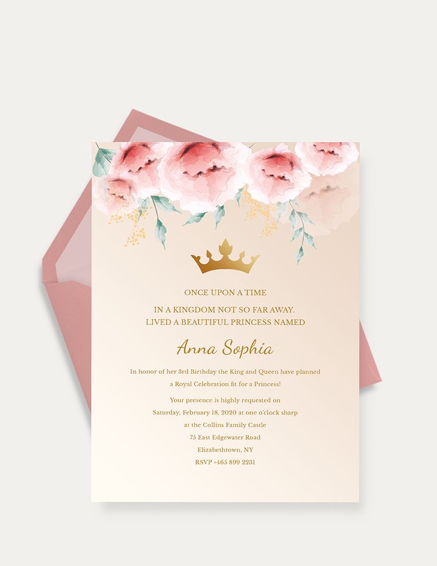 So why settle for a generic invitation when you can have a royal princess invitation template that will make your event truly unforgettable? Download our template today and start planning the royal party of your dreams!
