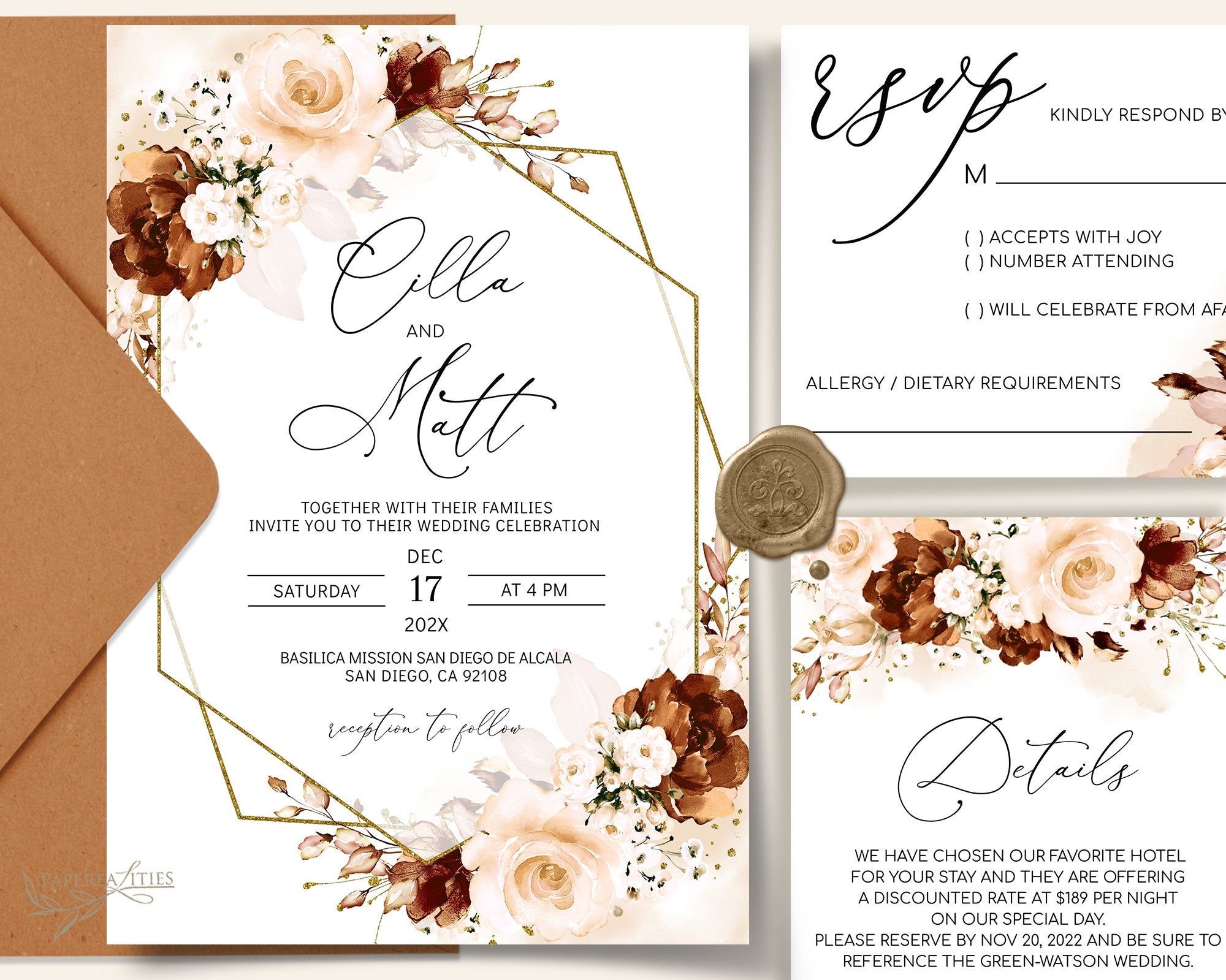 Our free rustic wedding invitations templates offer a variety of designs that capture the essence of a rustic celebration. From elegant floral motifs to whimsical woodsy elements, there’s something for every couple’s style. You can customize the templates with your own details, such as names, date, venue, and RSVP information, to make them truly unique to your wedding.