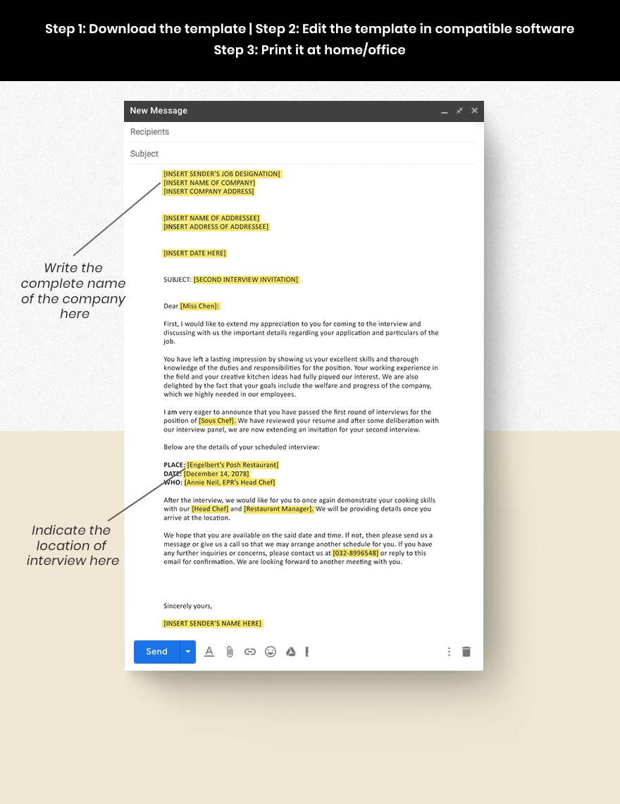The second interview will take place on [Date] at [Time] at our office located at [Address]. Please come prepared to discuss your previous work experiences, your skills and qualifications, and how you can contribute to our team. We look forward to meeting with you again and learning more about how you can be a valuable asset to our company.