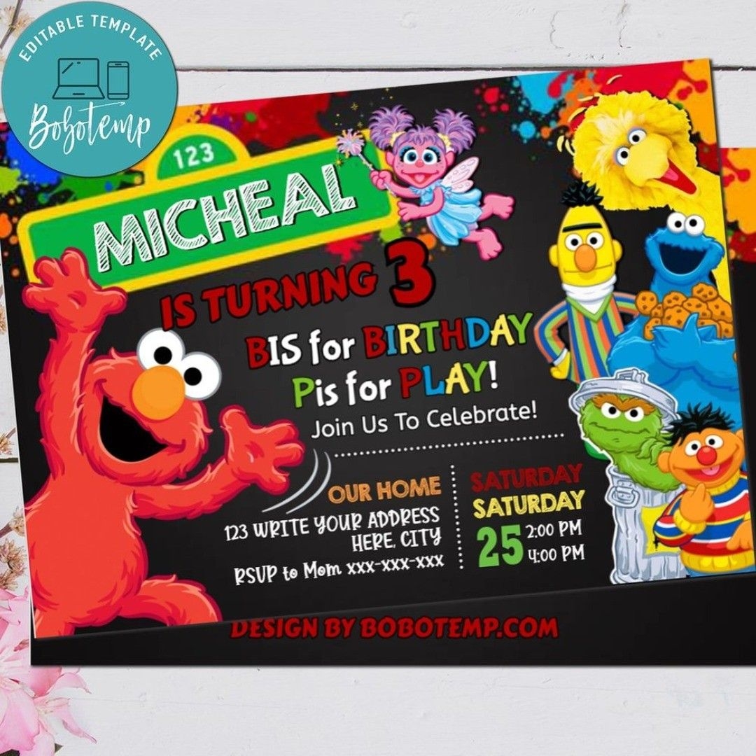 Download and Print sesame street birthday invitation template Listed below