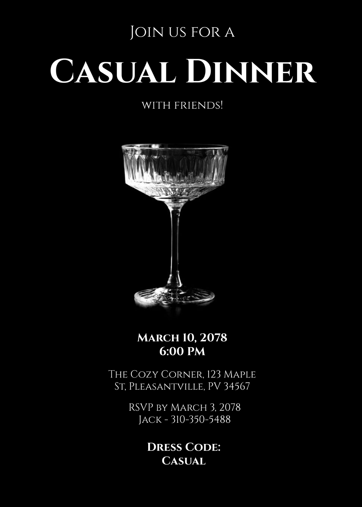 With a simple dinner invitation template, you can easily create a beautiful and inviting invite that will set the tone for a memorable gathering with your friends and family. So why wait? Start designing your dinner invites today and get ready for a fun and delicious evening!