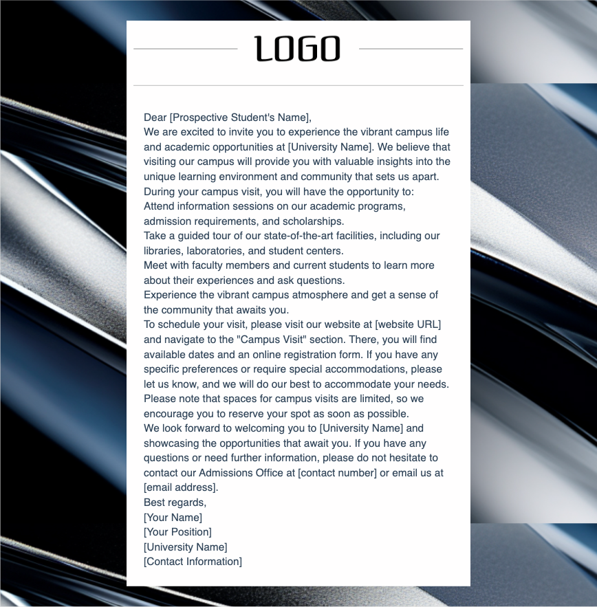 Below is a sample site visit invitation email template that you can use as a guide when reaching out to your guests: