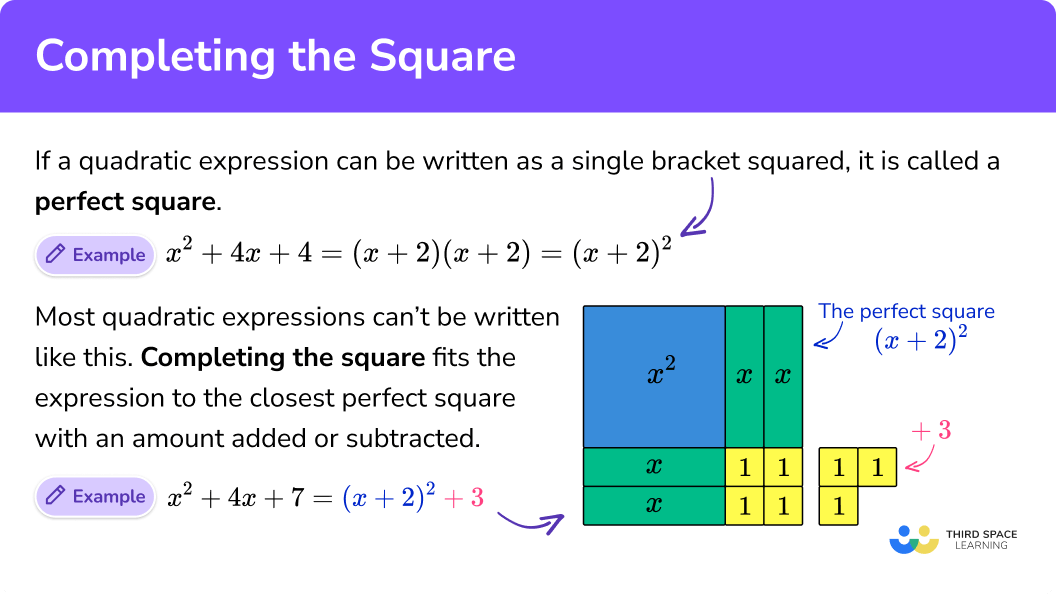 Completing the square is a technique used to solve quadratic equations in algebra. This method involves manipulating an equation to create a perfect square trinomial, which can then be easily factored to find the solutions. This process is especially useful when the quadratic equation cannot be easily solved by factoring or using the quadratic formula.