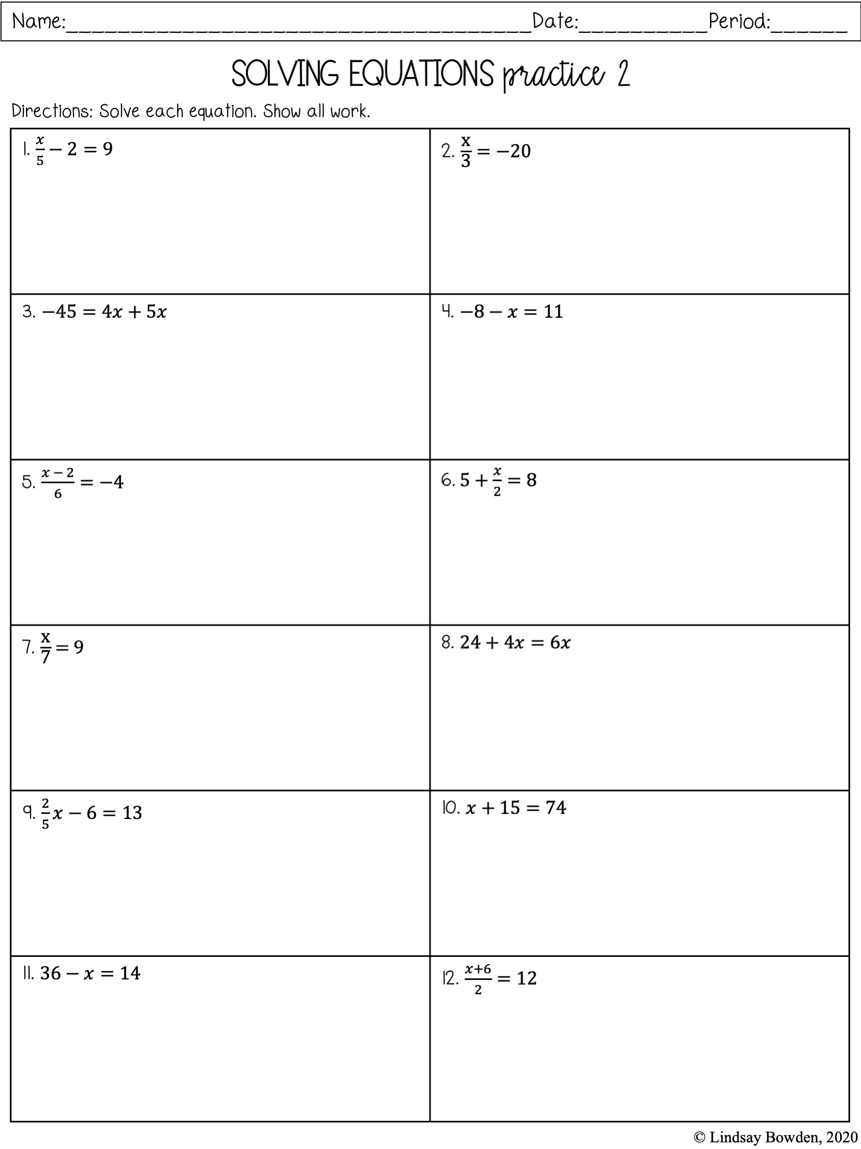 Solving One And Two Step Equations Lindsay Bowden Worksheets Library
