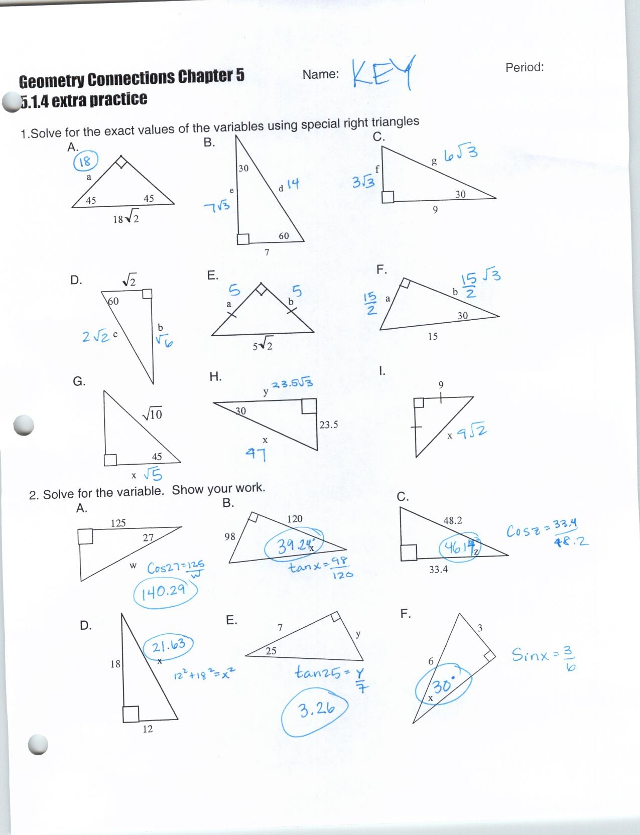 By downloading the special right triangles worksheet with answers PDF, students can work through a series of problems that involve identifying angles, side lengths, and solving for missing values in special right triangles. The answers provided allow students to self-assess their work and make corrections as needed.