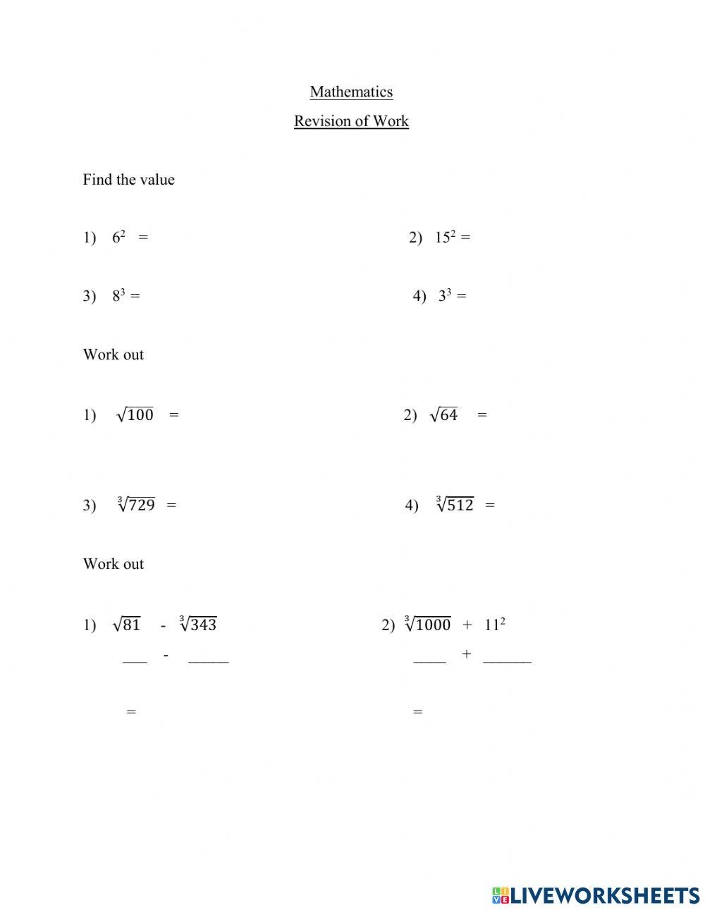 In addition to practicing square and cube roots, worksheets can also help students develop their problem-solving skills. By working through the problems on the worksheet, students can learn how to approach different types of problems and develop strategies for finding solutions. This can be particularly helpful when students encounter more complex mathematical problems in the future.