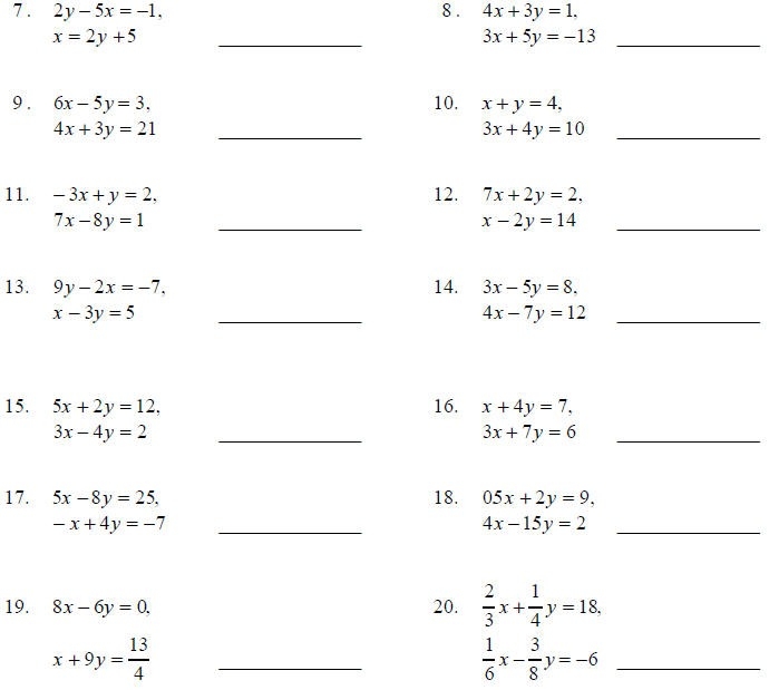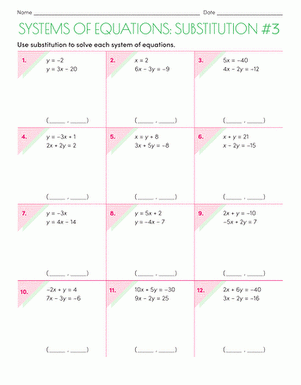 Let’s take a look at an example worksheet that involves both substitution and elimination methods. Consider the following system of equations: