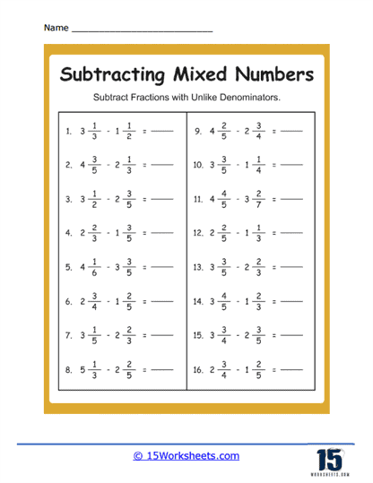 When it comes to subtracting mixed numbers with regrouping, it can be a challenging concept for students to grasp. However, with the right practice and worksheets, students can become more confident in their abilities. One effective way to practice this skill is through the use of worksheets that provide opportunities for students to regroup when subtracting mixed numbers.