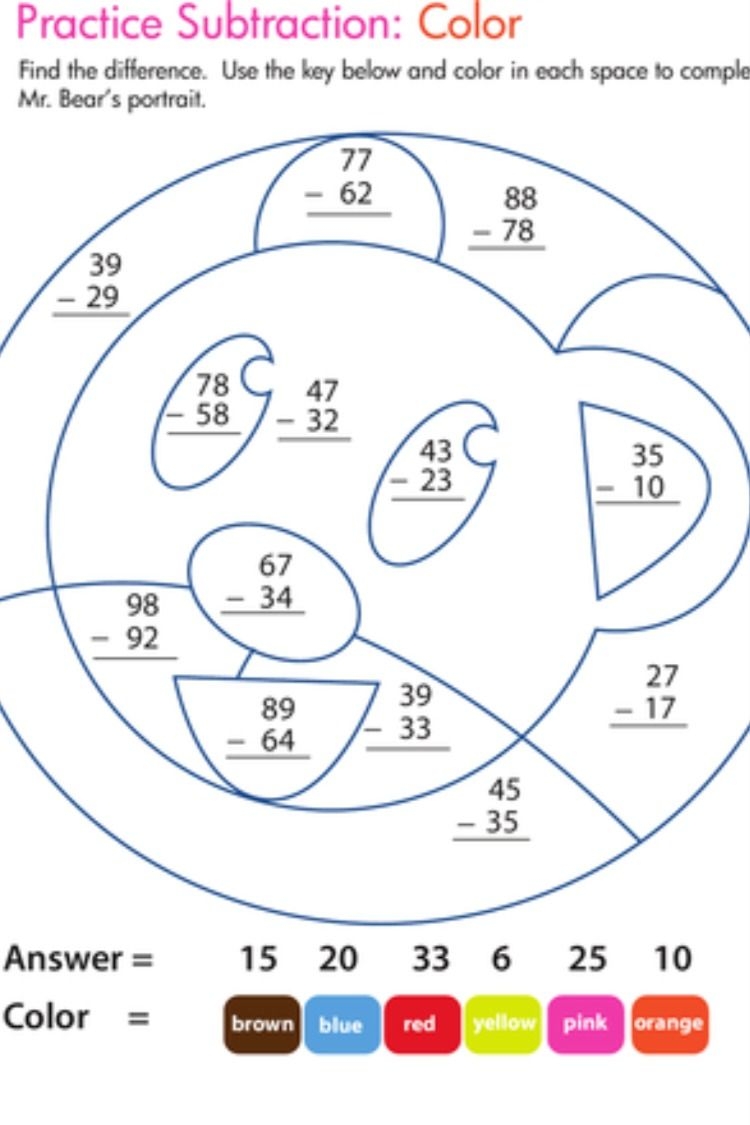 2 Digit Subtraction Coloring Worksheets Worksheet School Worksheets