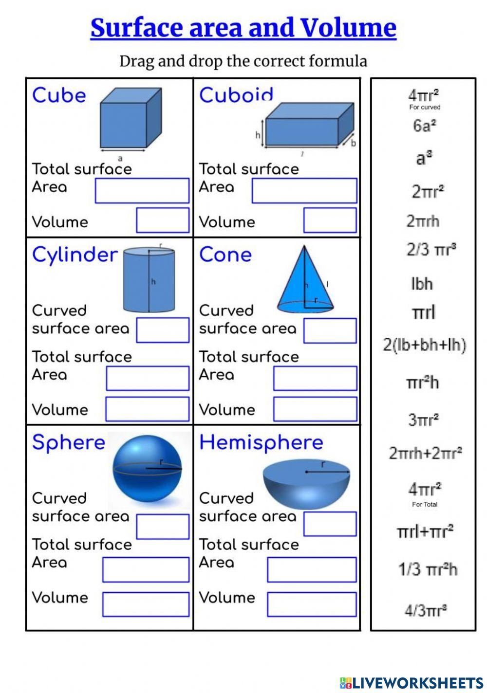Surface Area Volumes Worksheet Live Worksheets Worksheets Library
