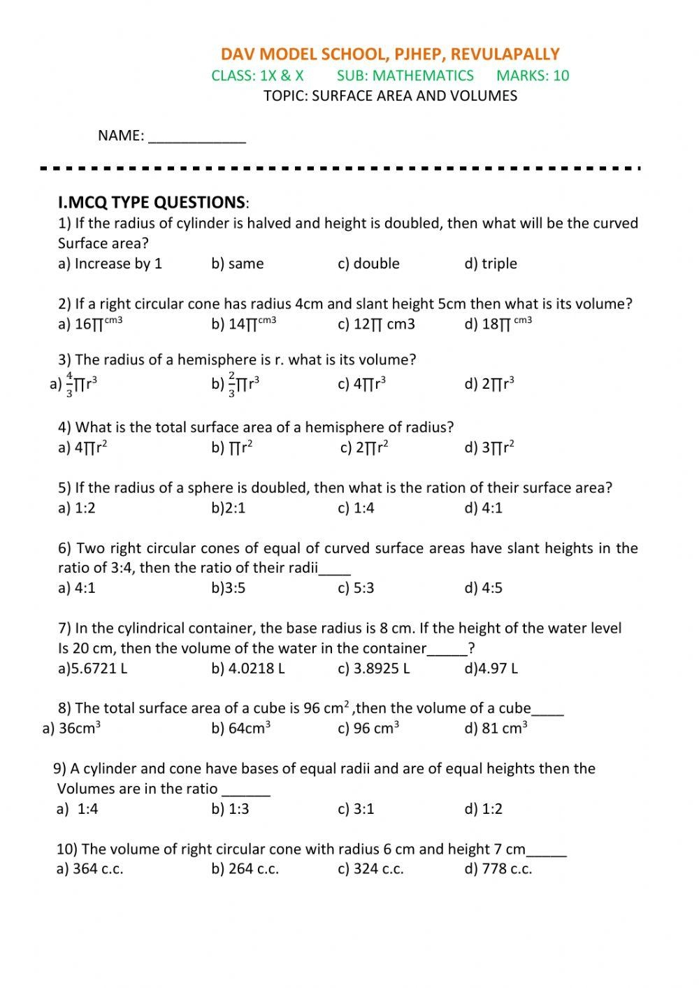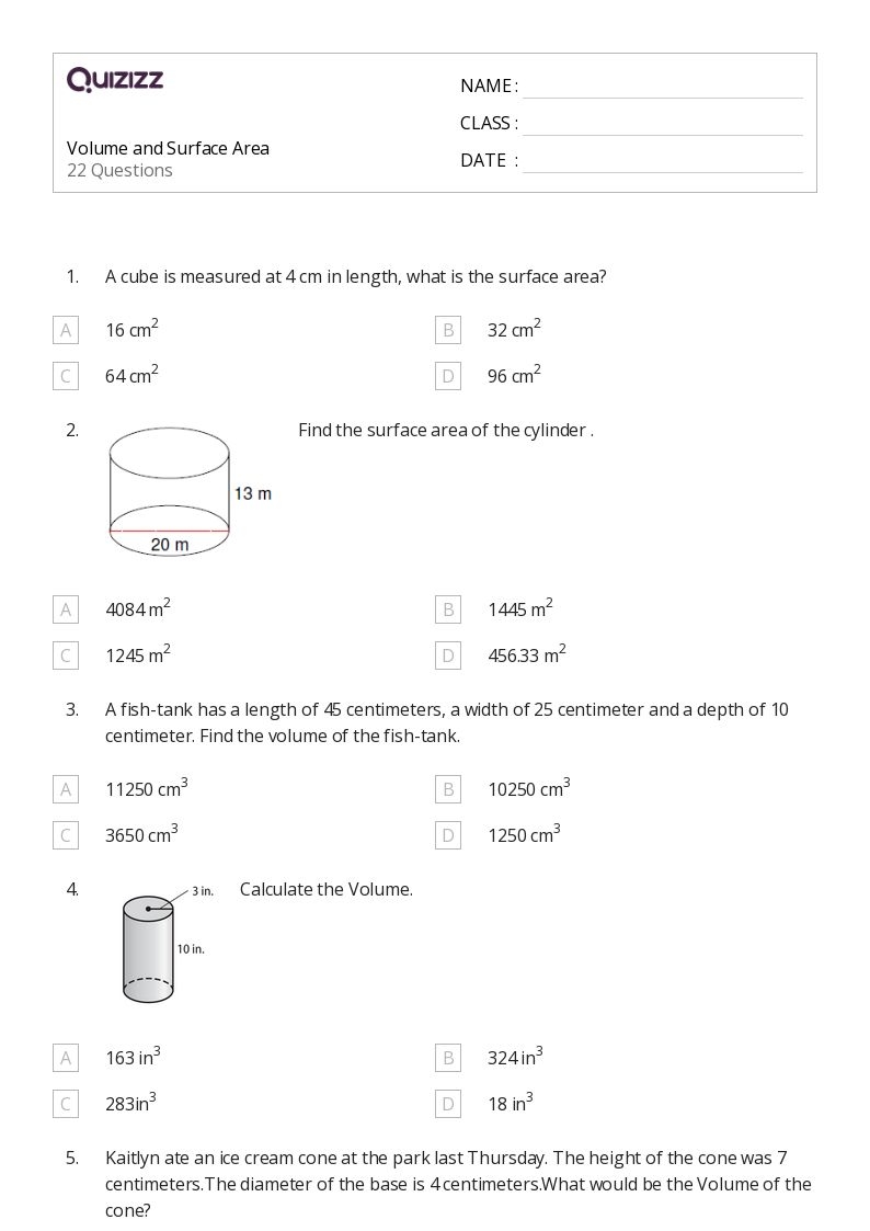 Surface Area Volume Worksheet Grade1to6 Worksheets Library