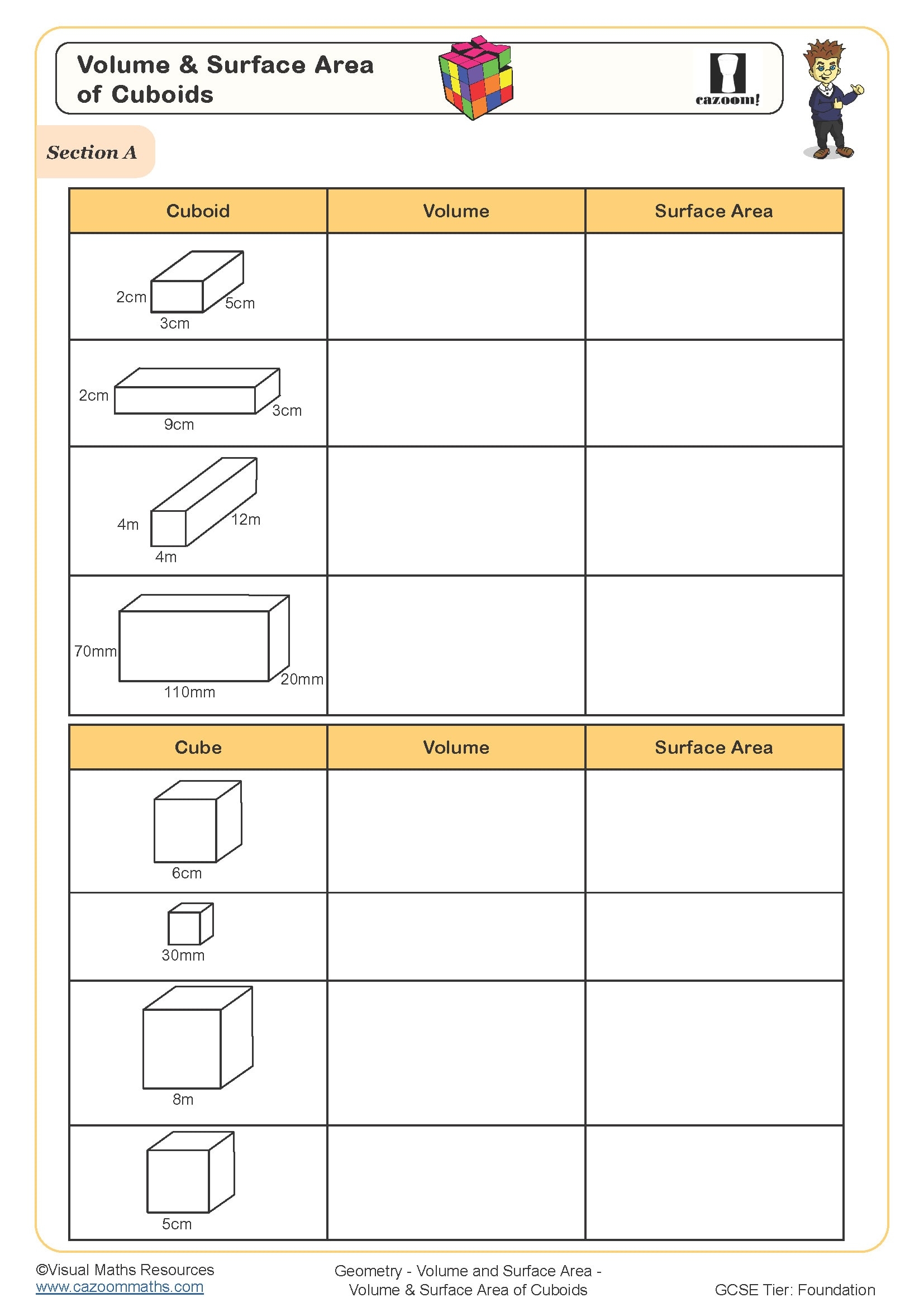 Volume And Surface Area Of Cuboids Worksheet Printable Maths