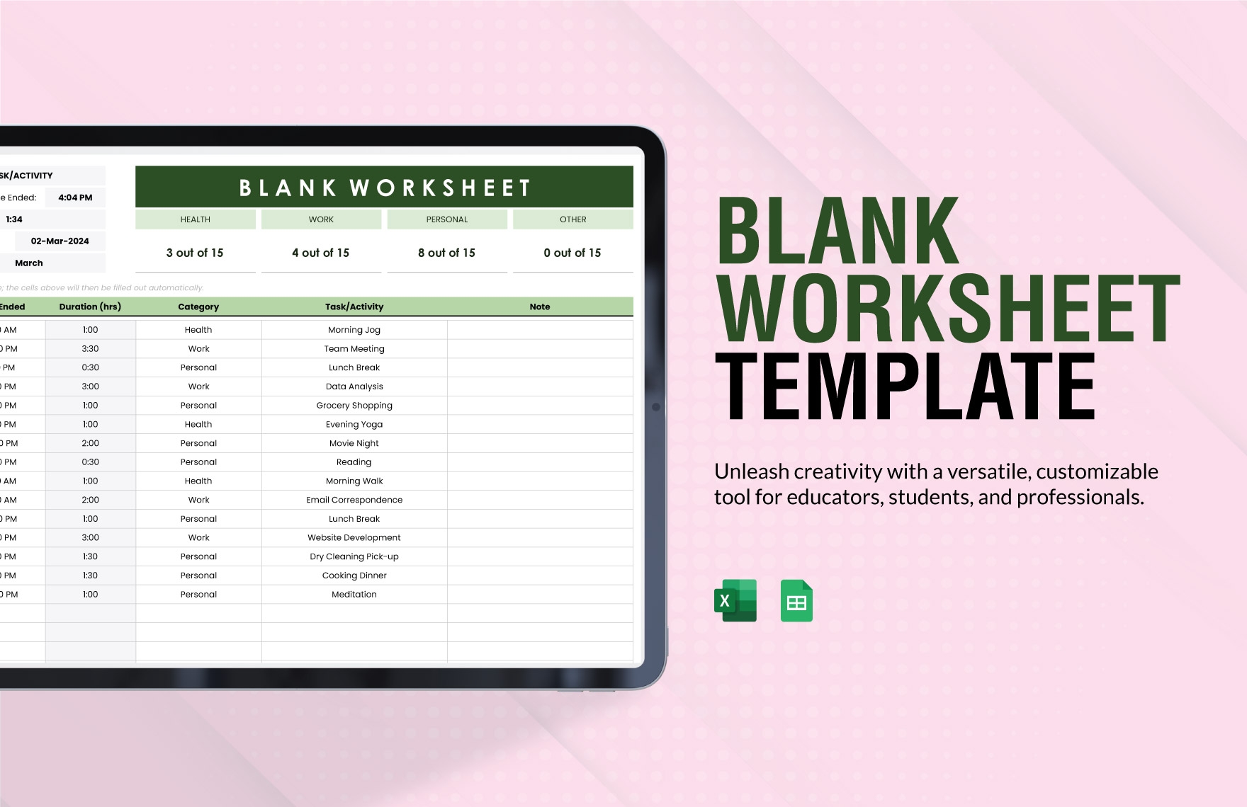 By using a template for your worksheets, you can easily input data, change the format, and update information as needed. This can be especially useful for repetitive tasks or when you need to create multiple worksheets with similar content.