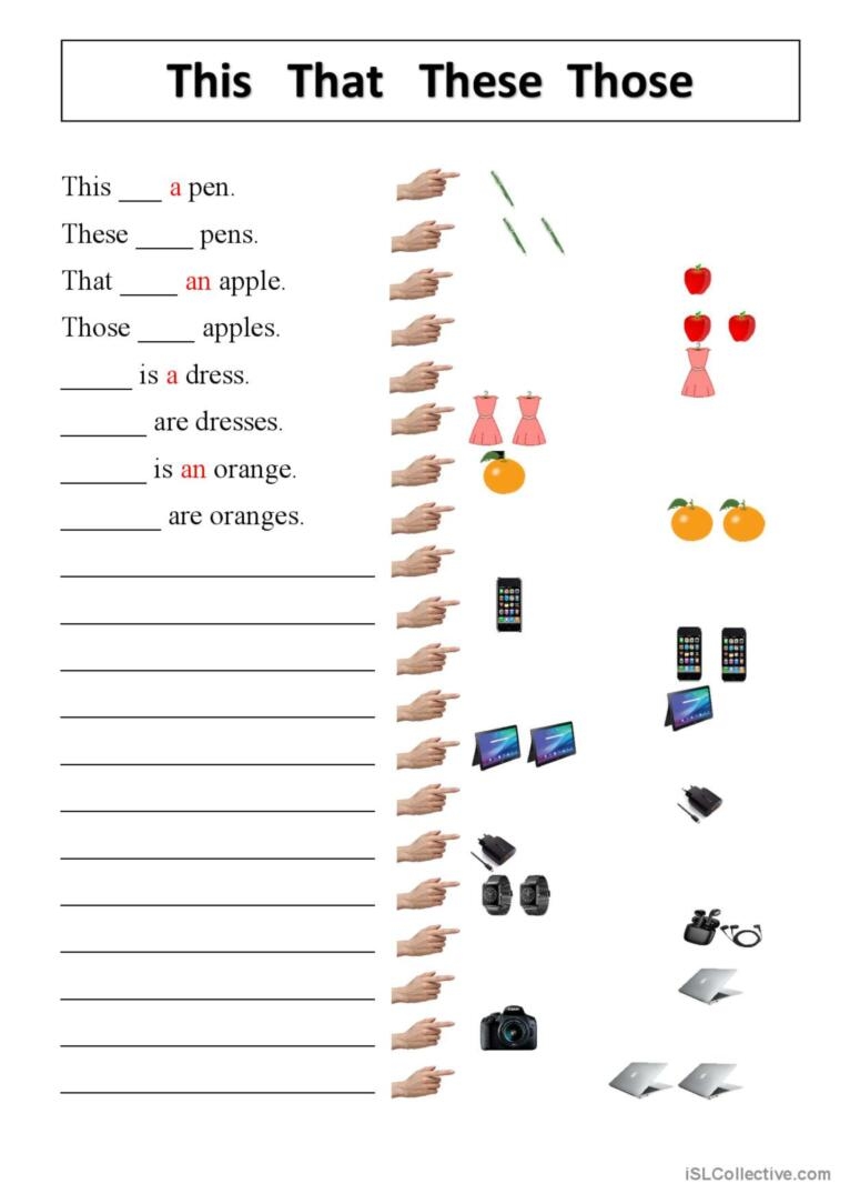 When it comes to learning English grammar, understanding the difference between “this” and “that” as well as “these” and “those” is essential. These words are demonstrative pronouns that help indicate the proximity of an object or objects in relation to the speaker. To reinforce this concept, worksheets can be a useful tool for students to practice and master the usage of these words.