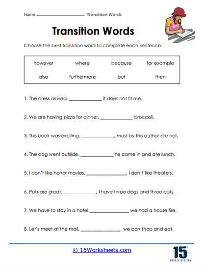 Transition Word Exercises Worksheets Printable PDF Template
