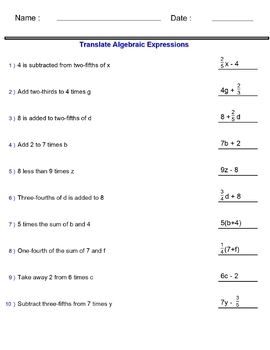 Translating expressions is an important skill in mathematics that helps students understand how to write mathematical phrases in a simpler form. This skill is essential for solving equations, simplifying expressions, and overall mathematical problem-solving. One effective way to practice translating expressions is by using worksheets that provide various examples and exercises for students to work on.