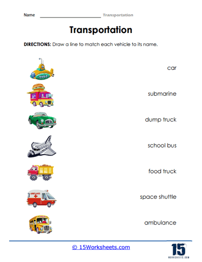 There are various types of transportation worksheets available for preschoolers, ranging from coloring pages featuring different vehicles to tracing worksheets that help children practice their writing skills. Matching games, puzzles, and counting activities can also be included to make learning about transportation more interactive and engaging.