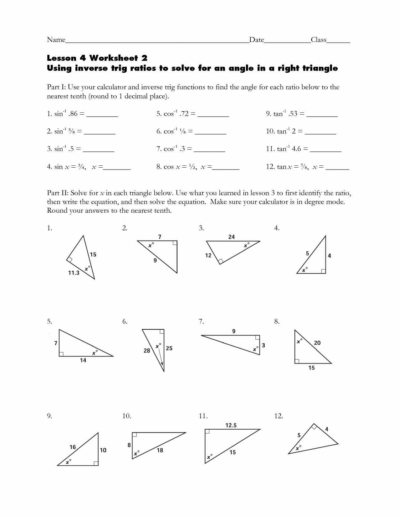 Trigonometric Ratios Worksheet Answers