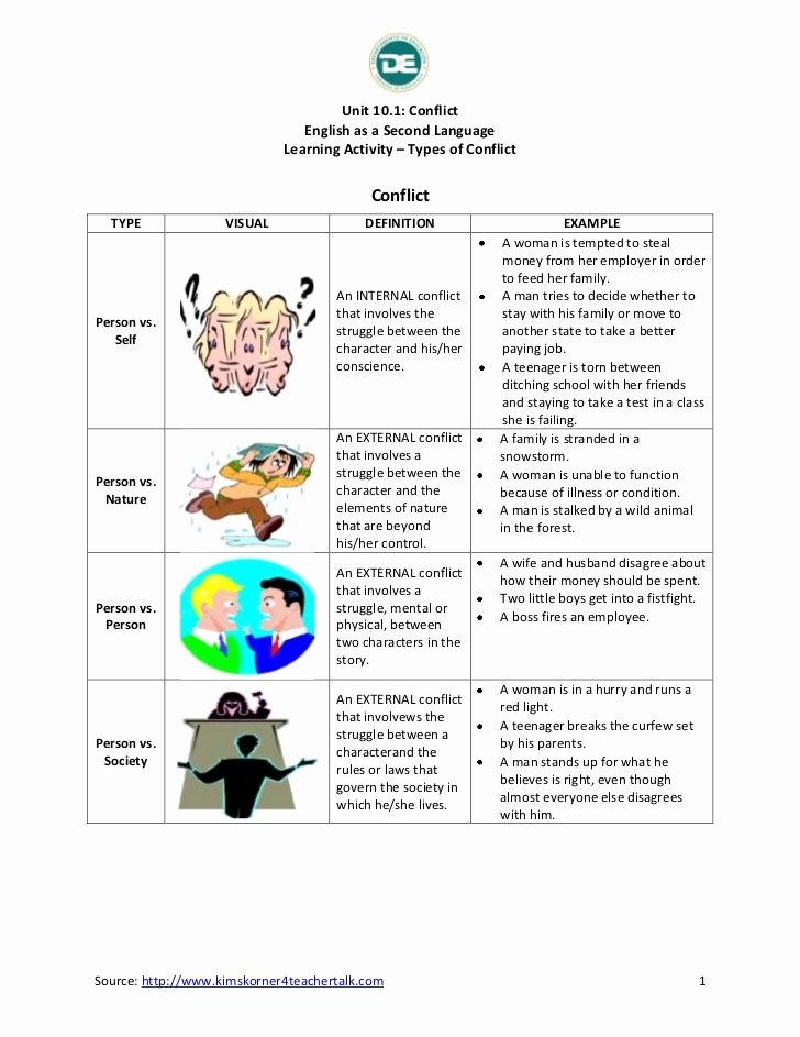 In conclusion, a types of conflict worksheet is a valuable tool for exploring the diverse ways in which conflict manifests in literature and life. By engaging with this resource, individuals can enhance their analytical skills, empathy, and capacity for resolving conflicts effectively. Whether used in educational settings or personal development contexts, a types of conflict worksheet can provide valuable insights into the complexities of human interactions and the dynamics of conflict resolution.